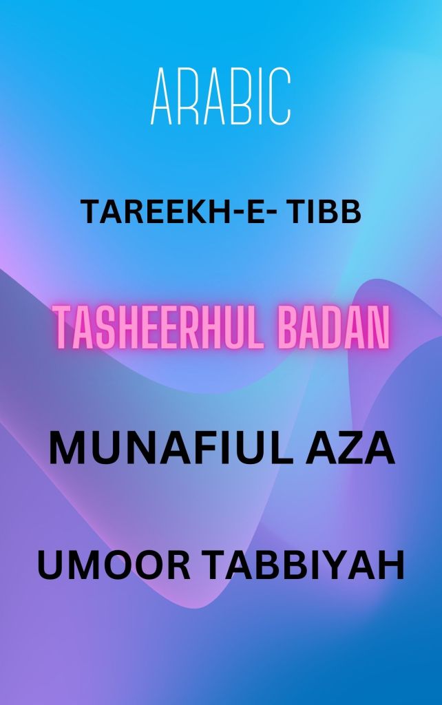 1st PROF SUBJECTS ARABIC & URDU TAREEQ TIBB (HISTORY OF MEDIICINE) UMOOR TIBBIYA TASHREEHUL BADAN (ANATOMY ) MUNAFIUL AZA (PHYSIOLOGY) 2nd PROF SUBJECTS 3rd PROF SUBJECTS Share this: Click to share on X (Opens in new window) X Click to share on Facebook (Opens in new window) Facebook Like Loading...